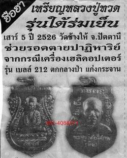 รุ่นนีประสปการณ์สูง และจะพบเห็นประสปการณ์เรื่องแคล้วคลาดบ่อยๆสำหรับผู้ที่บูชา ปัจจุบันโดนเก็บหมด หายากแล้วครับ สนใจสอบถาม 081-4088511 ยังมีหลวงปู่ทวดอีกมากรายการ เข้าชมร้านค้าคลิ๊กที่ลิงค์http://www.be2hand.com/scripts/shop.php?user=ngunkheng&do=list&cat_id=6774