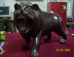 สิงโตไม้สักแกะสลัก อายุกว่า 40 ปี เฝ้าบ้านมานาน..ถึงเวลาแล้วที่จะได้เลือกทางเดินของตัวเอง .. 3900 !!! สำหรับผู้ที่ต้องการไปดูแล