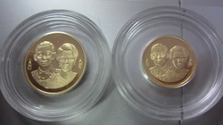 เหรียญที่ระลึกเนื้อทองคำ(ขัดเงา) ในหลวงคู่พระราชินี 2เหรียญชุด เหรียญ ครบ50ปีธนาคารแห่งประเทศไทยออกปีพ.ศ.2535 น้ำหนักทองคำ1บาท,50สตางค์ หายากมาก ผลิตน้อยมาก สวยมาก ขายไม่แพง