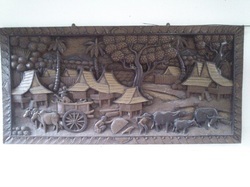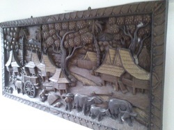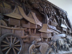 เป็นไม้ชิ้นเดียวครับ สลักเป็นเรื่องของกิจกรรมชาวบ้านในหมู่บ้าน งานแกะสลักด้วยมือ อายุ ประมาณ 25 ปีครับ แผ่นใหญ่ครับ ขนาด 1.02m x 0.50 m (102 cm x 50cm)