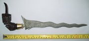 ความยาวรวม 17.5นิ้ว ใบยาว 10 นิ้ว มี 9 คต ลายหลักคือ ลายท้องงู แกนกลางเหล็กกล้า ด้ามหัวนกพังกะ พิเศษรัดทองเหลืองที่ด้ามและถ้วยกริชแป้นเตี้ย (ถ้วยกริช2ชั้น เพื่อไม่ให้ไม้แตกรานในภายหลังในสมัยโบราณมีเฉพาะในคนชั้นสูงครับ) ราคา2800บาท จัดส่งemsให้ฟรีครับ