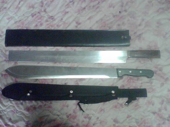 หัวตัด(อรัญญิก) ใบมีดสแตนเลส ยาว 19 1/2 นิ้ว พร้อมซองหนังอย่างดี 550 บาท สปาต้า ใบมีดสแตนเลส ยาว 18 นิ้ว พร้อมซอง 600 บาท ติดต่อ มานพ เบอร์. 089-580-8757