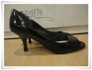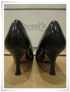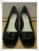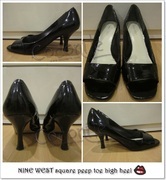 NINE WEST square peep toe high heels รองเท้าส้นสูงเปิดนิ้วหนังแก้วสีดำ ของแท้มือสอง