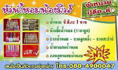 ขายส่งน้ำหอมซีซีละ 1 บาททุกกลิ่นรับประกันหอมติดนานทั้งวัน มีมากกว่า 150 กลิ่น และจำหน่ายหัวน้ำหอม ขวดน้ำหอมในราคาถูกที่สุด ส่งสินค้าได้ทั่วประเทศ ดูสินค้าได้ที่ : http://www.namhomnongmiw2010.com/