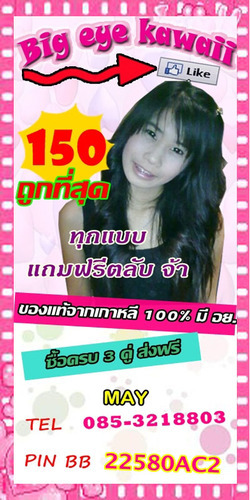 บิ๊กอาย เกรด A ของแท้ 100% นำเข้าจากเกาหลี ค่าอมน้ำ 55% สูงที่สุด ใส่สบาย มีทุกขนาดทุกค่าสายตา รายละเอียด http://www.facebook.com/BigeyeKawaii ฝากกด like ด้วยนะคะ หรือติดต่อ 085-3218803 may