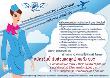 โอกาสที่คุณสามารถเรียนได้แอร์โฮสเตส อาชีพในฝันของหลายๆคน กับ www.skystudiobkk.com คุณหลิ้น 089-0134401