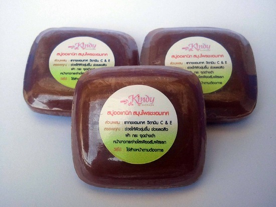 Kindy by suchaya สบูออแกนิค สมุนไพรซะแอมเทศ วิตามิน C & E ช่วยให้ผิวชุ่มชื้่น ช่วยลดสิว ฝ้า กระ และจุดด่างดำ ราคาก้อนละ 80 บาท