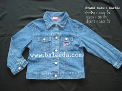 งามค้าตัวนี้...เสื้อแจ็คเก็ตยีนส์เด็ก แบรนด์ Barbie เนื้อนุ่มสบาย สภาพดีมาก (ถึงเป็นผ้ามือสอง แต่ก็เป็นของคัดสรร..โดย BaleedaJeans)