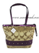 (พร้อมส่ง)กระเป๋า COACH signature stripe studded tote #17567 สี khaki/plum พร้อมส่งจากไทยค่ะ สามารถสั่งซื้อได้เลยค่ะ ดูรายละเอียดได้ที่ http://www.oneclickmarket/shop/manycoach.com