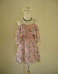 NEW!!! เดรสผ้าชีฟองเปิดไหล่ตกแต่งระบายสีชมพูลายดอกไม้ เสื้อผ้าสวยราคาไม่แพง สินค้าเกรด AAA โดย [Cutie Closet]