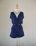 NEW ITEMS จัมพ์สูทหรือชุดหมีผ้าชีฟองคอป้ายสีกรมท่า พร้อมสินค้าลดราคา แบบไม่ซ้ำใคร สินค้าเกรด AAA โดย [Cutie Closet]