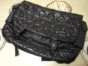 เป็นกระเป๋าหนัง ปักหมุดสีทอง ด้านในกระเป๋าเป็นผ้า