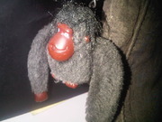รุ่นเก่า ลิงเป็นหัวพังค์ สีเทา ด้านในมีช่องเป็นกระเป๋าซิบตาข่าย ด้านนอกตรงมุมกระเป๋าด้านล่างมีรอยสีซีด...ลง