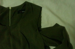เสื้อเปิดไหล่สีเขียวขี้ม้า ตัวยาว ข้างหลังเป็นซิป ค่าส่งฟรี