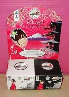 ครีมภูเขาไฟฟูจิ ซึ่งเป็นครีมที่นำเข้าส่วนผสมสำเร็จทั้งหมด ซึ่งได้รับความนิยมอย่างมาก จากประเทศญี่ปุ่น โดยเน้นที่ความเป็นธรรมชาติ ดั้งเดิมและคุณค่าแห่งภูเขาไฟฟูจิ ส่วนผสมจาก มุก ชาเขียว โคลน ถ่านหิน น้ำแร่ สารสกัดจากธรรมชาติ บริเวณภูเขาไฟฟูจิ เน้นความขาวใสให้แก่ใบหน้า กำจัดสิว ฝ้า และเพิ่มบำรุ่งผิวให้ขาว อมชมพูอย่างเป็นธรรมชาติ