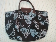 กระเป๋า shopping สไตล์ Longchamp จุของได้จำนวนมาก เหมาะสะพายทั้งวันทำงานและวันพักผ่อน ลายและสีกระเป๋าเป็นสี classic พื้นกระเป๋าสีดำ ตัดด้วยลายดอกกุหลาบ ขาวหม่นและฟ้าเทา