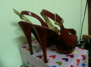 รองเท้าส้นสูงสีแดงเบอร์ 39 ค่ะ เคยใส่ 1 ครั้ง ซื้อเมื่อ 15 ต.ค.54 ด้านล่างรองเท้าจะเป็นลายผ้าสีดำ สวยมาก ลองติดต่อขอดูก่อนได้ ไม่ซื้อไม่เป็นไรค่ะ คู่นี้เราซื้อมา 690 บาท สภาพดีมาก เพราะเคยใส่แค่ชั่วโมงเดียว ไม่มีรอยใดๆทั้งสิ้น เพราะเราเดินในโรงแรมอย่างเดียว (เอารองเท้าไปเปลี่ยน) เรื่องราคาต่อรองได้นะ