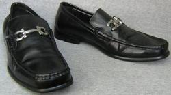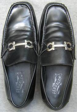 Ferragamo หนังดำทรงสวมมีส้นคาดเหล็กเบอร์ 40