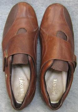 LACOSTE ทรงสวมสายแปะหนังน้ำตาลทั้งคู่เบอร์ 39.5