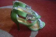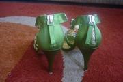 รองเท้าใหม่ nine west size 6M สี green satin ชื่อรุ่น Jones ซิปหลังประดับคริสตันสวยหรูหรา สภาพ100% ซื้อมาจาก us ที่เคาน์เตอร์ในไทยราคา 5100 บาท