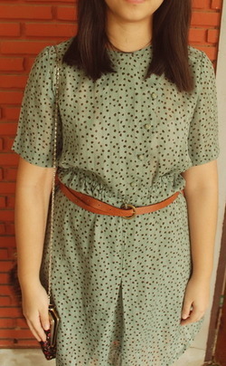 ขาย เดรส สีเขียว ลายจุดสีดำ 150 บาท