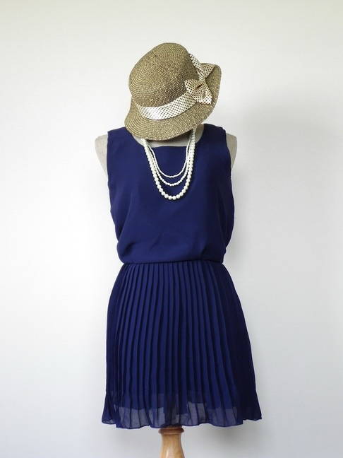 Maxine ขายเสื้อผ้าแฟชั่น - เดรสสั้น ผ้าชีฟอง จับพรีต มีซับใน สีน้ำเงินเข้ม