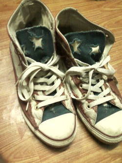 รองเท้า Converse หุ้มข้อ ลายธงชาติสหรัฐอเมริกา เบอร์ 7 มือสอง สภาพเซอร์สุดๆ ยังไม่ซักเพราะอยากคงสภาพเดิมเอาไว้ แต่รูปทรงยังเหมือนเดิม เพราะซื้อมาไม่ค่อยได้ใส่ พื้นยังใหม่ และลายยังสวยมาก อยากขายจริง ๆ ^^'