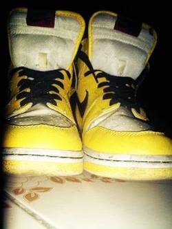 ขายรองเท้า Nike สี ขาว-ดำ-เหลือง ราคาติดต่อกันได้หลังไมล์คับ