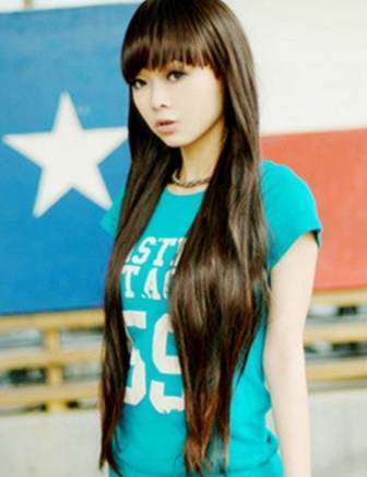 วิกผมยาว หน้าม้า สีน้ำตาลเข้ม