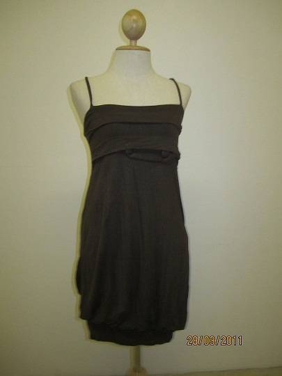 ชุดกระโปรงสายเดี่ยวสีน้ำตาล สภาพดี ผ้าหนา ความยาว 80 ซม คลุมเข่า