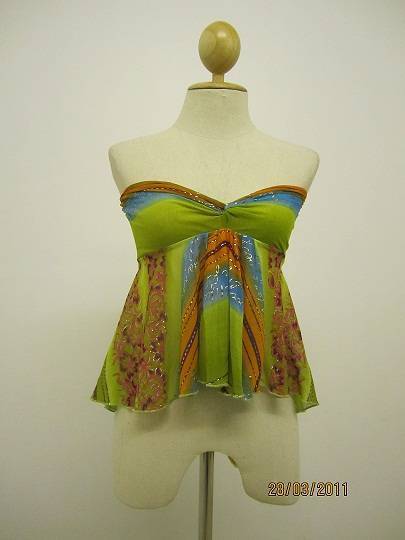 เสื้อเกาะอกแฟชั่นมือสอง สภาพดี สีเขียวสด ข้างหน้ายาว 30 ซม หลังยาว 46 ซม อก 32-34