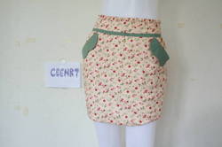 กระโปรงสีครีมแถบเขียวลายดอกไม้หวาน ๆ ค่ะ รอบเอว 28 นิ้ว ยืดได้อีกด้านหลังเป็นสม็อก ความยาว 17 นิ้ว
