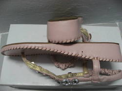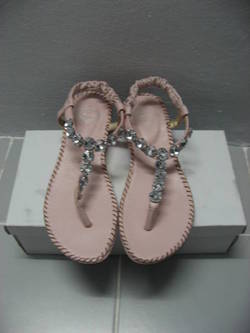 รองเท้าแตะหนังสีชมพูอ่อนประดับเพชร