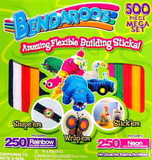 ของเล่นเด็กเล็กเด็กโตหรือแม้แต่ผู้ใหญ่ Bendaroos แท่งสติ๊กมหัศจรรย์ ประดิษฐ์งานสร้างสรรค์เสริมจินตนาการได้อย่างไม่จำกัด ปั้นแต่งตุ๊กตาหรือของเล่นสุดโปรดด้วยตัวเอง พร้อมเวปภาพขั้นตอนการทำได้หลายอย่าง ของเล่นที่ เด็ก ๆ หรือผู้ใหญ่อย่างคุณไม่ควรพลาด สนุก ผ่อนคลาย คลายเครียด เสริมจินตนาการ ของแหลม เพื่อพัฒนา วิศวะ หรือ สถาปนิกในอนาคต หรือคุณครูที่ต้องการนำไปสอนเด็กเพื่อเสริมสร้างจินตนาการ และทักษะทางศิลปะ สามารถ ส่งไอเดียของคุณ เพื่อแชร์ใน comunityได้ทั่วโลก sticksมีจำนวน 500 ชิ้นใน 1 กล่อง