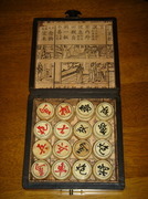 ชุดหมากรุกจีน บรรจุุอยู่ในกล่องไม้บุด้วยหนังแท้ ลายมังกร&หงส์ ผืนตารางหมากรุกเป็นหนังแท้ สวยงามมาก หายาก