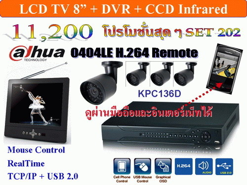 DVR CCTV 4 กล้อง H.264 + CCD KPC 136B Infrared + ฟรีแถมจอ LCD ด่วน.....
