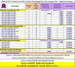ขออนุญาตินำเสนอสุดยอดฟิวเตอร์จากเยอรมัน ที่ได้รับการยอมรับจากนักถ่ายภาพทั่วโลก ทุกชิ้นเป็นของแท้ ส่งฟรีแบบ EMS หรือนัดพบตามตกลง สอบถามข้อมูลเพิ่มเติมได้ที่ คุณประเสริฐ 086-329-1928 รายละเอียดสินค้าและราคาดูได้ที่รูปด้านล่างเลยครับ