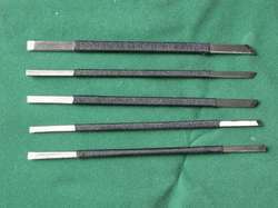 มีดแกะสลักชุดนี้มี 5 เล่ม สำหรับใช้ในการแกะสลักตราประทับจีน โดยมีมีดปลายแบน กับมีดปลายเฉียงที่มีขนาดต่างๆกัน