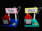 หรือสำหรับร้านขายของฝาก ของที่ระลึก... มีแบบต่าง ๆ ดังนี้ค่ะ แบบป้าย + หลักกิโล ฐานขนาด : 6 x 6 x 7.5 cm. แบบป้าย 3 แผ่น + หลักกิโล ฐานขนาด : 6 x 6 x 7.5 cm. แบบป้าย + ตู้ไปรษณีย์ ฐานขนาด : 6 x 6 x 7.5 cm. แบบป้ายแนวตั้ง + หลักกิโล ฐานขนาด : 6 x 6 x 10 cm. ราคาปลีก 30 บาท