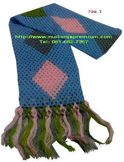 ขายผ้าพันคอถักโครเชส์ งานฝีมือราคาถูกๆแบบไม่คิดค่าแรง เหมาะสำหรับใช้ประดับตกแต่งร้านค้าหรือหุ่นโชว์ ขนาด 18x1800 โดยประมาณ ใช้ไหมญี่ปุ่นประมาณ 2 ม้วน < มีแค่ 6 ผืนเท่านั้น > ราคาพิเศษ ผืนละ 180 บาท (จัดส่งฟรี)