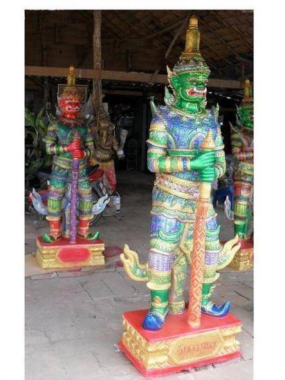 ท้าวเวสสุวรรณเป็นรูปปั้นหินทราย ความสูง 187 ซม. ความกว้าง(ตรงศอก) 47 ซม. ฐาน สูง 20 กว้าง 57 ลึก 33 ซม.