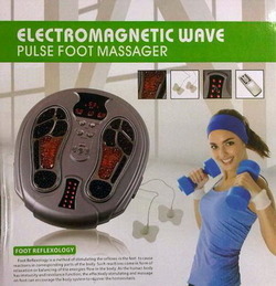 Electromagnetic wave pulse foot massager เครื่องนวดเท้าแม่เหล็กไฟฟ้ารุ่นใหญ่ มาพร้อมระบบการนวด 56 โหมด และมีอินฟาเรดเพื่อการนวดในระดับลึก ที่วางเท้าจะมีปุ่มนวดกดจุดตามจุดสำคัญต่างๆบนฝ่าเท้า ผลิตภัณฑ์นี้ออกแบบตามทฤษฎีการนวดฝ่าเท้าของจีนโบราณ นำมาผสมผสานกับวิทยาการการแพทย์สมัยใหม่ ในการดูแลสุขภาพด้วยตนอง การนวดเท้าจะช่วยกระตุ้นและเสริมประสิทธิภาพของเซลล์ในเท้า ซึ่งมีความสัมพันธ์กับอวัยวะในแต่ละส่วนของร่างกาย ช่วยผ่อนคลายความเมื่อยล้า ช่วยกระตุ้นการไหลเวียนโลหิตของร่างกายให้มีความสมดุล และนวดกระตุ้นจุดเพื่อสุขภาพที่ดี