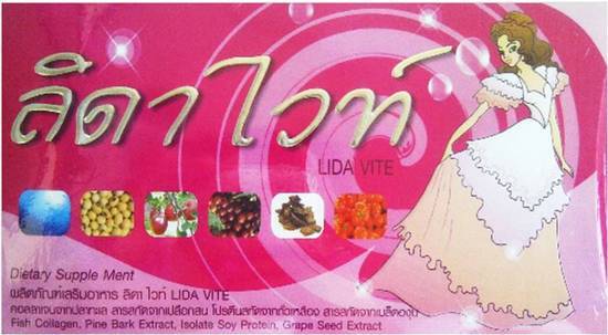 Lida Vite ลิด้า ไวท์พิสูจน์มาแล้วว่าสามารถ ขาวเนียนใสอมชมพูด้วย พลังของสุดยอดของอาหารผิวมีส่วนผสมของสารสกัดอย่างเข้มข้น และมีประสิทธิภาพ เพื่อเสริมพลังของ แอล-กลูตาไธโอนให้มีประสิทธิิภาพดียิ่งขึ้นช่วยเผยผิวขาวใสอมชมพูเพียง1-2 สัปดาห์ Lida Vite ลิด้า ไวท์ไม่ต้องทานคู่กับวิตตามินซี ฝ้า กระ จุดด่างดำ จางลงได้อย่างเห็นได้ชัดเจนดารา นางแบบ และสาวประเภทสองนิยมรับประทานเพื่อผิวขาว เนียนใส