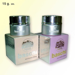 บาชิกระปุกเงิน (Baschi) รุ่นออริจินอลไต้หวัน 15 กรัม ขายยกคู่ทั้งครีมกลางวัน-ครีมกลางคืน ราคาคู่ละ 700 บาท ต้องการซื้อแยกเฉพาะครีมกลางวันหรือกลางคืน ขายกระปุกละ 400 บาทค่ะ (http://rainbow.mymarket.in.th) ราคาขายส่ง · ซื้อ 1 คู่ ราคาคู่ละ 700 บาท · ซื้อ 2 คู่ ราคาคู่ละ 650 บาท · ซื้อ 4 คู่ ราคาคู่ละ 600 บาท มากกว่านี้ --> โทรมาสอบถามราคาโดยตรงยิ่งซื้อเยอะราคา ยิ่งลด คุ้มสุดๆ จ้า โทรสอบถามเพิ่มเติมได้ที่ 084 -769-5301 รุ้ง หรือ email : [email protected] รายละเอียด ครีมบาชิ เวลากลางวัน (Baschi Day) ผลิตภัณฑ์นี้ประกอบด้วยพืชแบร์เบอร์รี่ และออร์โมนธรรมชาติที่สกัดจาก สมุนไพรหลายชนิดที่นำมาประสานกับเอ็นไซม์ที่ใช้ต่อต้านเชื้อจุลินทรีย์ และการอักเสบ ตลอดจนวิตามินที่เป็นปัจจัยในการทำให้ผิวขาวขึ้นสองเท่า ที่ใช้ในการขจัดจุดด่างดำ กระ จุดต่างๆ บนใบหน้า และผิวหนัง อีกทั้งสิวฝ้าทุกชนิด ที่เกิดจากการติดเชื้อแบคทีเรีย และสามารถซึมลึกลงไปในเนื้อเยื่อใต้ผิวหนัง เพื่อขจัดหัวสิวที่กำลังฟักตัว และทำลาย สารสีดำใต้ผิวหนัง ซึ่งทำให้ผิวขาวขึ้น และขาวขึ้นเพียงใช้ไม่กี่ครั้ง ครีมบาชิเวลากลางคืน (Baschi Night) ผลิตภัณฑ์นี้มีสารโปรตีน และสารโยยุยมิน ซึ่งสกัดมาจากพืชในปริมาณสูง ใช้ ร่วมกับวิตามินหลายชนิด และอีมอยเจอร์ไรเซอร์ที่เพิ่มความชุ่มชื้น สารฟื้นฟูสภาพผิวที่ให้โปรตีนไฟบริน ที่ซึมลึกเข้าไปใต้ผิวหนัง ทำให้เยื่อหุ้มเซลล์ถ่ายเท และขับสารสีดำใต้ผิวหนังออกมาได้เร็วขึ้น เป็นผลิตภัณฑ์ชั้นยอดสำหรับการขจัดจุดด่างดำ กระ และจุดไม่พึงปรารถนาทุกชนิด และทำให้ผิวขาวขึ้นด้วย และผลิตภัณฑ์ชนิดนี้มีสารต่อต้านการอักเสบ และเชื้อจุลินทรีย์ที่ช่วยบรรเทา อาการระคายเคืองของผิว อันเกิดจากภูมิแพ้ และขจัดอาการบวม และอาคารคัน ทำให้ผิวมีสุขภาพดีขึ้น เพียงใช้ไม่กี่ครั้ง จะสังเกตว่าตื่นเช้าหน้าใสกว่าปกติอีกด้วย การใช้ควรใช้ควบคู่กันทั้งครีมสำหรับเวลากลางวัน และครีมสำหรับเวลากลางคืน คุณสมบัติโดยรวมของบาชิ ลดสิว และรอยดำบนใบหน้า ช่วยทำให้หน้าขาวใส เนียน ลดความหมองคล้ำบนในหน้า ลดริ้วรอยและแผลเป็นบนใบหน้าให้จางลงอย่างเห็นได้ชัด หลังการใช้ จะเริ่มเห็นผลภายใน 7 วัน ** การใช้ควรใช้ควบคู่กันทั้งครีมสำหรับเวลากลางวัน และครีมสำหรับเวลากลางคืน **