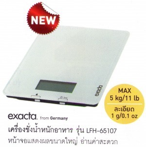 เครื่องชั่งอาหาร ดิจิตอล exacta by SOEHNLE 5กก. รุ่น LFH-65107 ราคาปกติ 1,850.- ราคาพิเศษ 1,200.- เครื่องชั่งอาหาร ดิจิตอล exacta by SOEHNLE 5กก. รุ่น LFH-65107 ชั่งน้ำหนักของส่วนผสมได้ถูกต้องแม่นยำ ชั่งอาหารได้สูงสุด 5 กก. แสดงน้ำหนักเป็นตัวเลขดิจิตอล แสดงค่าที่เปลี่ยนอย่างละเอียดทุกๆ 1 กรัม