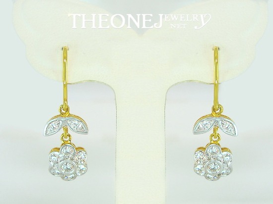 Big Sale 29,000 บาท ต่างหูเพชร ดีไซน์ดอกไม้ เพชร 18 เม็ด 1.0 กะรัต Color 97