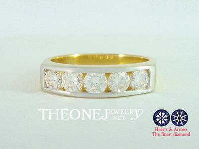 แหวนแถว เพชร 5 เม็ด น้ำหนักเพชรรวม 0.73 กะรัต เหลี่ยม Hearts&Arrows. Color 98