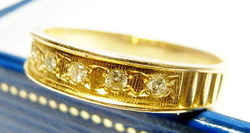 แหวนปลอกมีดทองประดับเพชร ไซส์ 55 ตัวเรือนทองแท้ 14k (ไม่ใช่งานชุบนะคะ ทองแท้ตันๆค่ะ) ประดับเพชรเกสรแท้จำนวน 5 เม็ดรวม 10 ตังค์ น้ำหนักรวม 1.29 กรัม @@@@@@@@@@@@@@@ shop-si.com จำหน่ายเครื่องประดับทองแท้ / เพชรพลอยแท้ (มือหนึ่งและมือสอง) หลากหลายสไตล์ในราคาที่ใครๆก็เป็นเจ้าของได้ มีใบรับประกันจากร้านออกให้พร้อมสินค้าค่ะ เชิญเลือกชมสินค้าอื่นๆเพิ่มเติมได้ที่ http://www.shop-si.com
