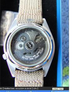 นาฬิกาSEIKOสายสีเขียวของเเท้มีใบรับประกัน ด้านหลังโชว์ระบบการทำงานของตัวเรือน