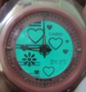 Casio Poptone Lady’s Watch LCF-10D-4AVDR Casio Poptone รุ่น LCF-10D-4AVDR นาฬิกาข้อมือสำหรับผู้หญิง ตัวเรือนและสายทำจาก stainless แข็งแรงไม่เป็นสนิม ขอบหน้าปัดทำด้วยพลาสติก สีชมพูหวานๆ หน้าปัดแซมด้วย รูปหัวใจ และแถบด้านซ้ายเป็นการบอกเวลาแบบวินาที แต่ละหนึ่งวินาทีก็จะมีขีดสีชมพูขึ้นทีละขีด จนเต็มแถบหน้าจอ เก๋มากๆเลยจ้า 1400.-